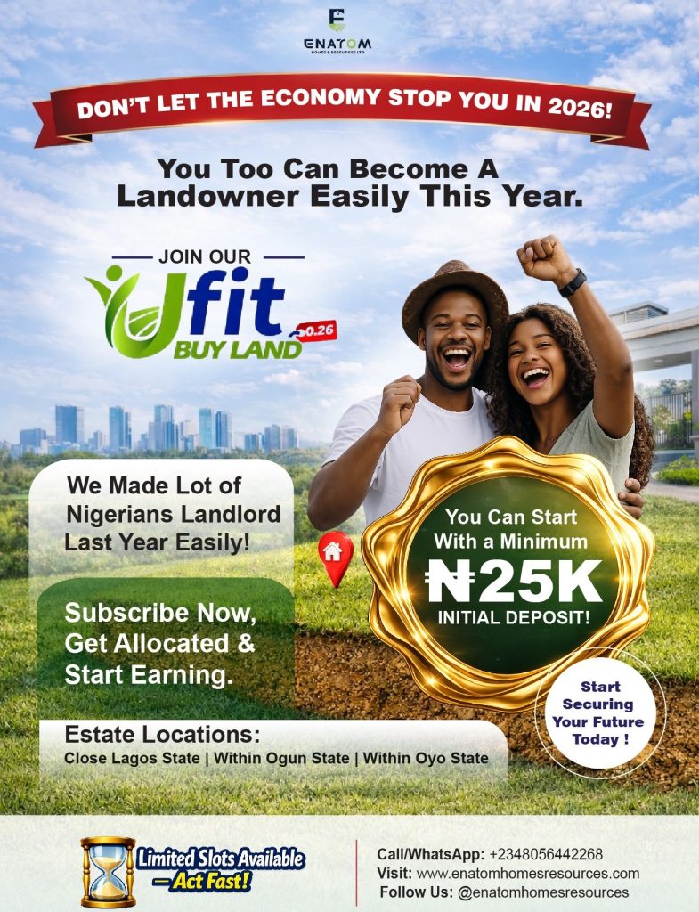 Don’t let the economy stop your dream of owning land this year. With UFIT Buy Land, you can start with as little as a ₦25,000 initial deposit and enjoy flexible payment plans. Join many Nigerians who secured land easily in prime locations across Lagos, Ogun, and Oyo States. Take action now and get allocated fast — limited slots available!